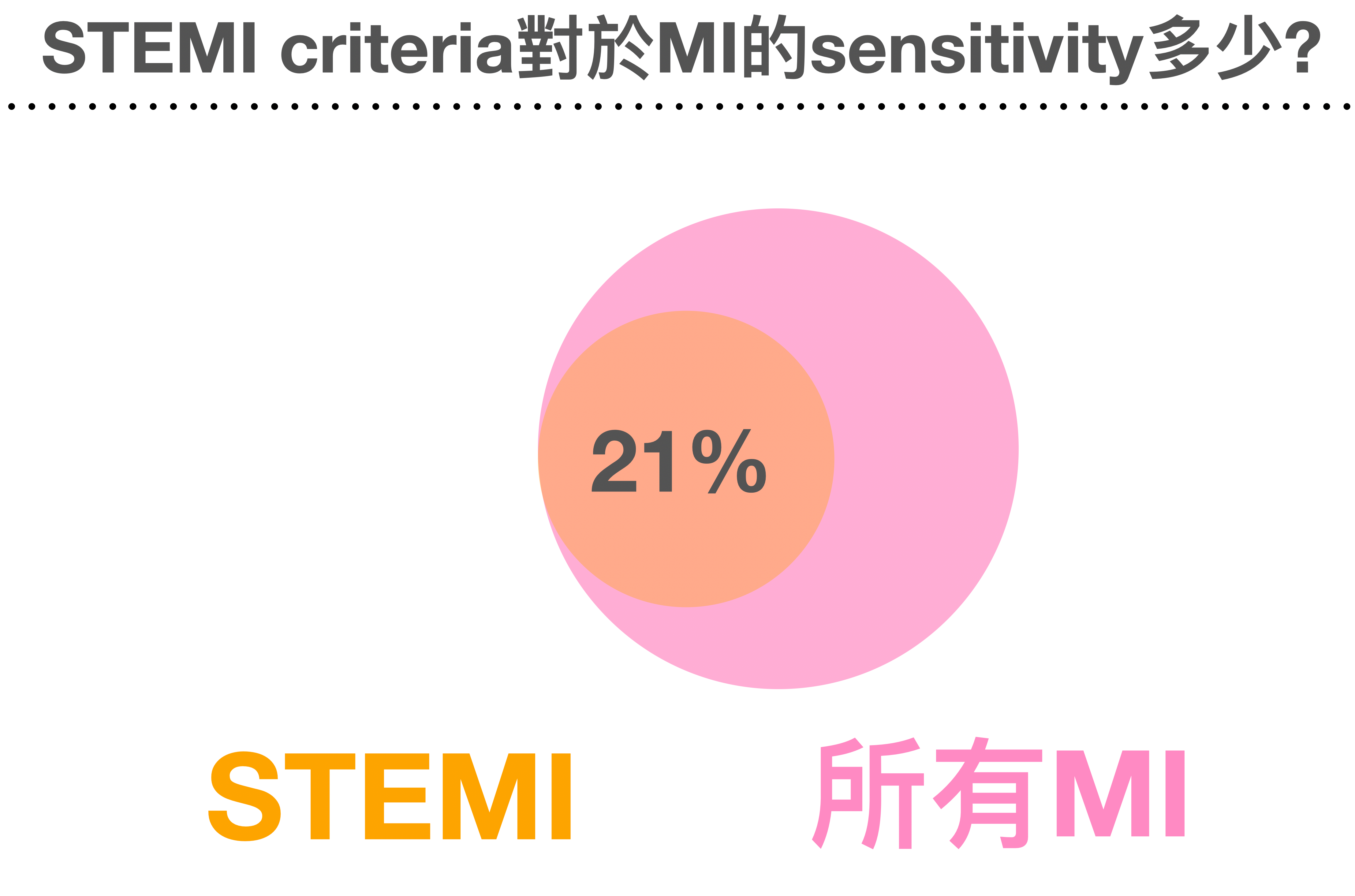 這是什麼意思?也就是可能有高達8成的AMI病患,無法透過STEMI criteria做出AMI的診斷。