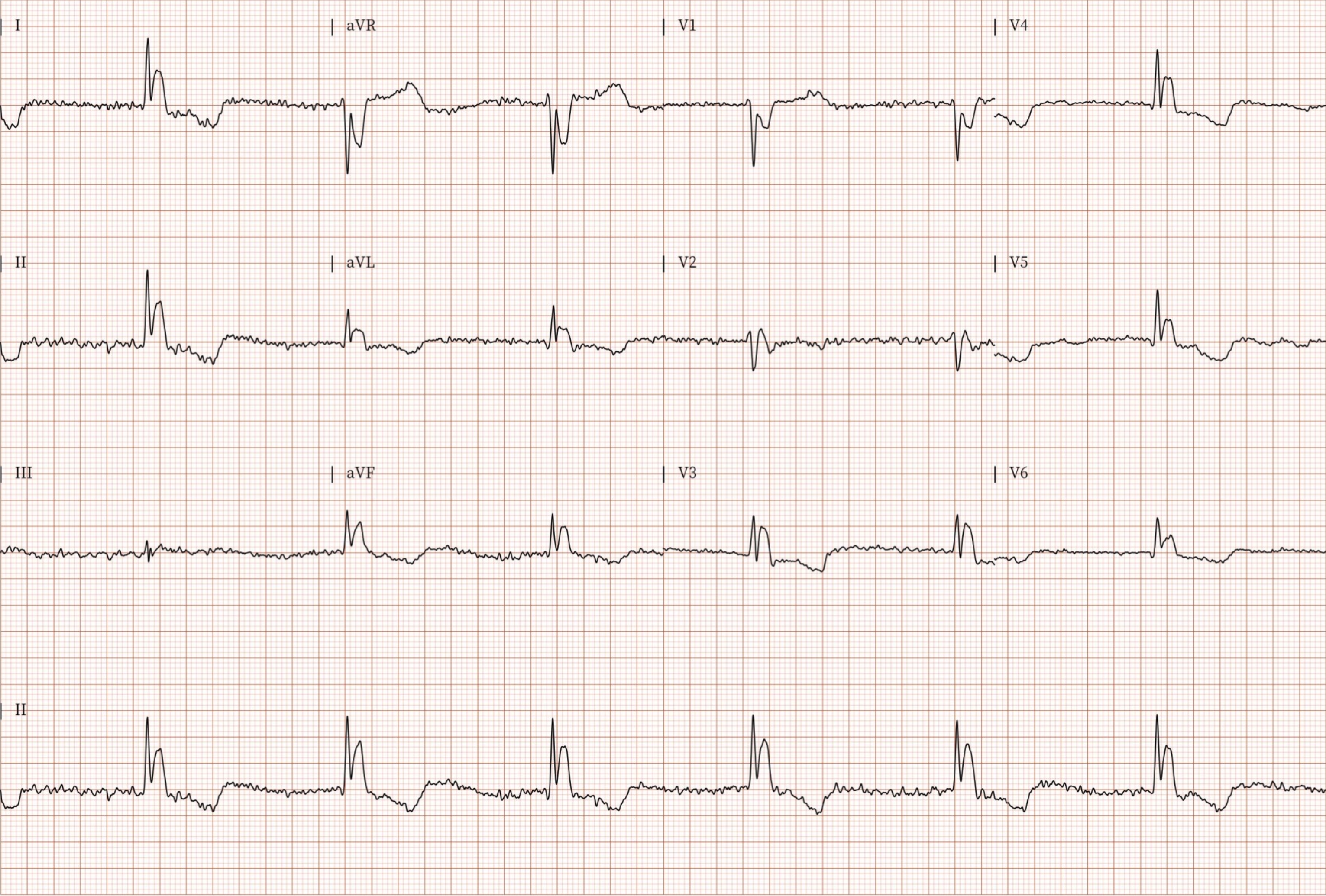 Dr. Smith's ECG Blog: Hypothermia at 18 Celsius in V Fib arrest: CPR, then ECMO rewarming, for 3 hours, then Defib with ROSC. Interpret the ECG. - link ↩︎
